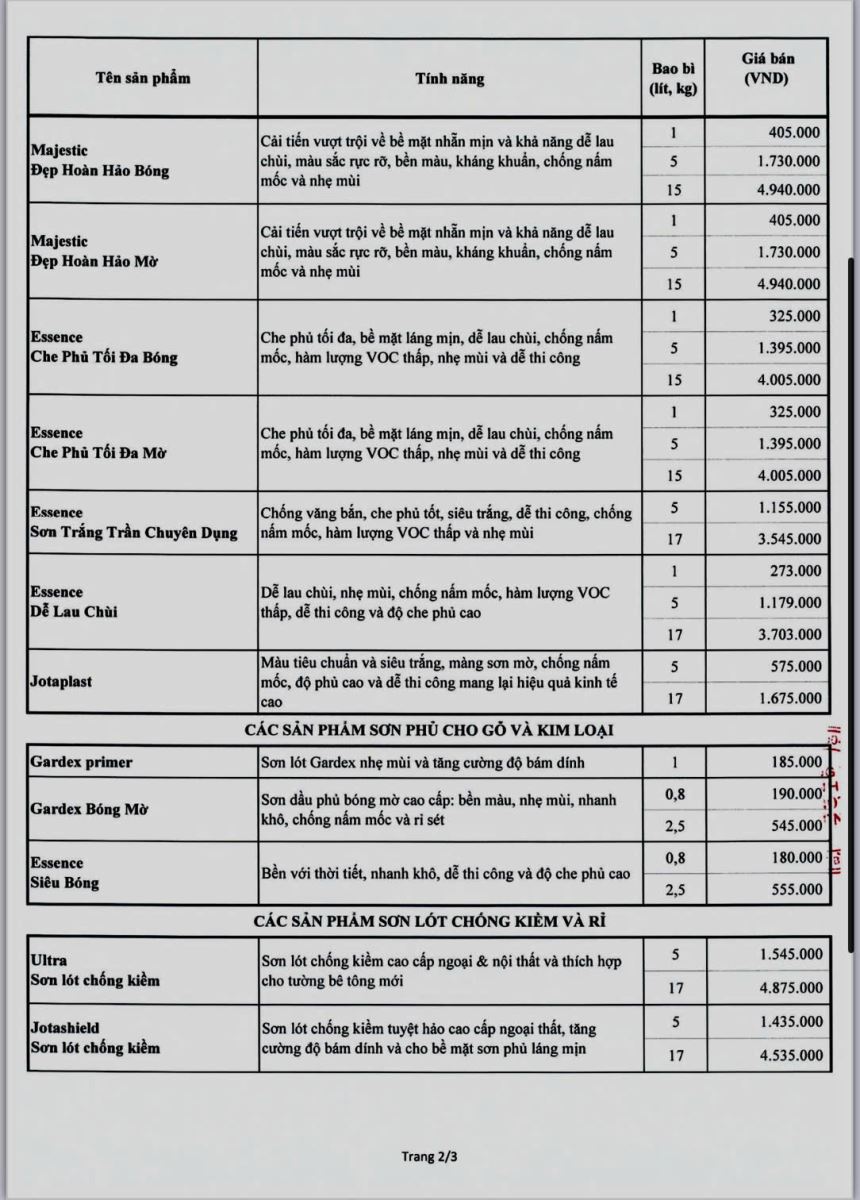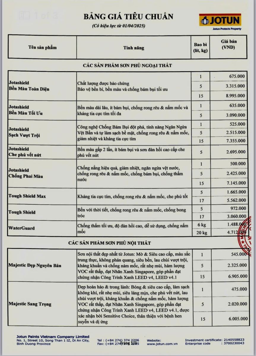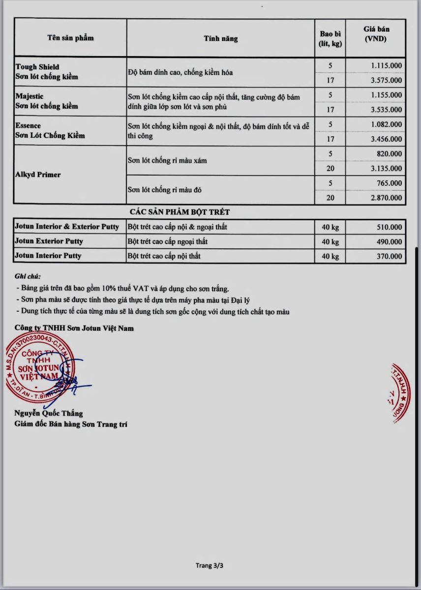 NEW!!! BẢNG BÁO GIÁ MỚI NHẤT SƠN JOTUN