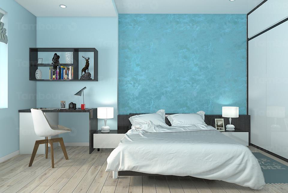 Bạn chỉ cần bày trí phòng ngủ của mình thật đơn giản, sử dụng thêm một số đồ nội thất trắng, xanh ngọc để không gian thêm hài hòa.