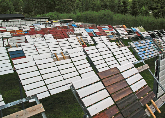 Thử nghiệm này được thực hiện theo nhiều cách khác nhau bằng cách phơi các tấm pa nô trong môi trường thực tế và trong phòng thí nghiệm riêng biệt.
